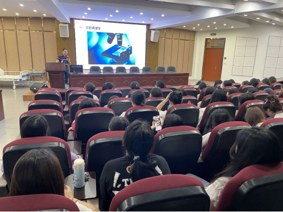 “病理诊断及临床病理检测技术”主题讲座中,杨清海副总经理从基础病理技术——组织脱水、固定、染色、切片、封片,到病理理论知识、诊断要点、鉴别诊断等方面,向同学们深入浅出地讲解诊断病理学、免疫组织化学、荧光原位杂交等技术及其应用。