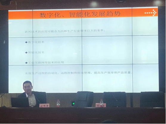 讲座伊始,陈宗保介绍了化学与生物技术学院的基本情况,并为刘唯奇专家为学院师生作讲座表示热烈欢迎。刘唯奇围绕“化工教育文化与发展”主题展开报告。他首先对丙烷脱氢工程进行了系统介绍,重点分析了丙烷脱氢的历史背景、反应机理和主要工艺技术特点,加深师生对丙烷脱氢的认识,增进对化工文化的了解,增加学生学习化工的兴趣。接着,他从丙烷脱氢讲到了西部大开发,又提到了技术革新、一带一路等重大计划,还列举了一些美国公司在化工方面的成果。最后,报告深入阐述了化工生产的数据化与智能化,通过数据化模拟更好地推进化工生产的发展以获取更大的经济效益,智能化的巡视监控设备也已经投入实际化工生产管理使用,这为学院师生研究数据在化工生产中的应用提供了思路和方法。