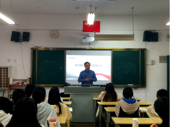 洪书源首先以新时代10年来,特别是全国教育大会召开5年来的教育成就为切入,讲述了教育强国的内涵,不仅包括教育的质量水平,还涵盖教育的公平性、创新性和国际性。接着,他提到,教育强国建设是中华民族伟大复兴的基础工程,需要全社会共同努力,更需要广大青年奋斗和奉献。最后,洪书源列举毕业生爱岗敬业的案例,引发同学们思考并讨论“教育强国建设,你做些什么?”,希望同学们勇做奋斗有为的强国青年。