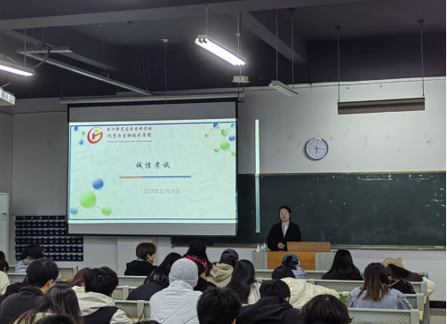 为增强学生诚实守信意识,进一步严肃考风考纪,营造良好的学风,2024年1月1日,化学与生物技术学院面向2022级、2023级全体学生开展“诚信考试”主题班会。