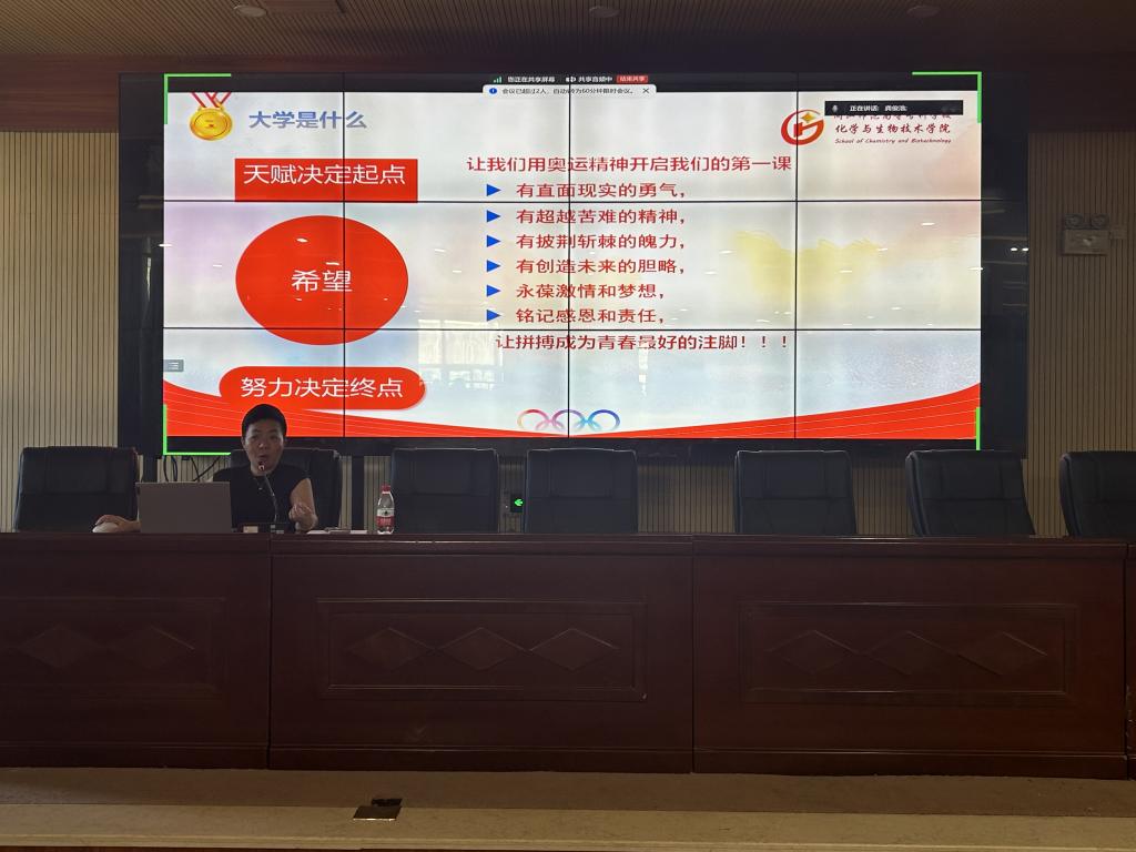 为积极引导学院24级新生快速融入新环境,完成角色转化,扣好大学生活的“第一粒扣子”,化学与生物技术学院于2024年9月20日下午在福清校区信息楼四楼会议室开展新生开学第一课,学院党总支副书记张瑛为24级新生授课。
