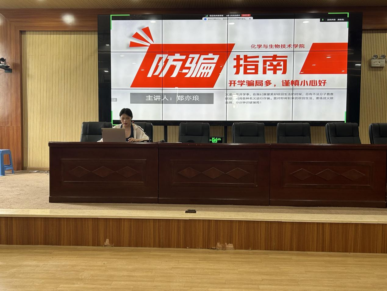 为提高新生防诈防毒的警惕意识和分析应变能力,增强学生的自我保护能力,9月21日下午,化学与生物技术学院在福清校区信息楼4楼会议室开展防诈防毒知识讲座。本次讲座由新生辅导员郑亦琅老师主讲,24级全体新生参加讲座。