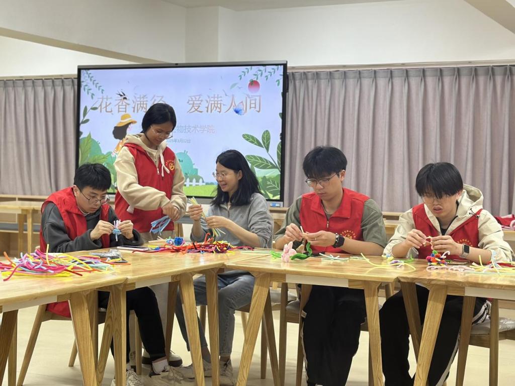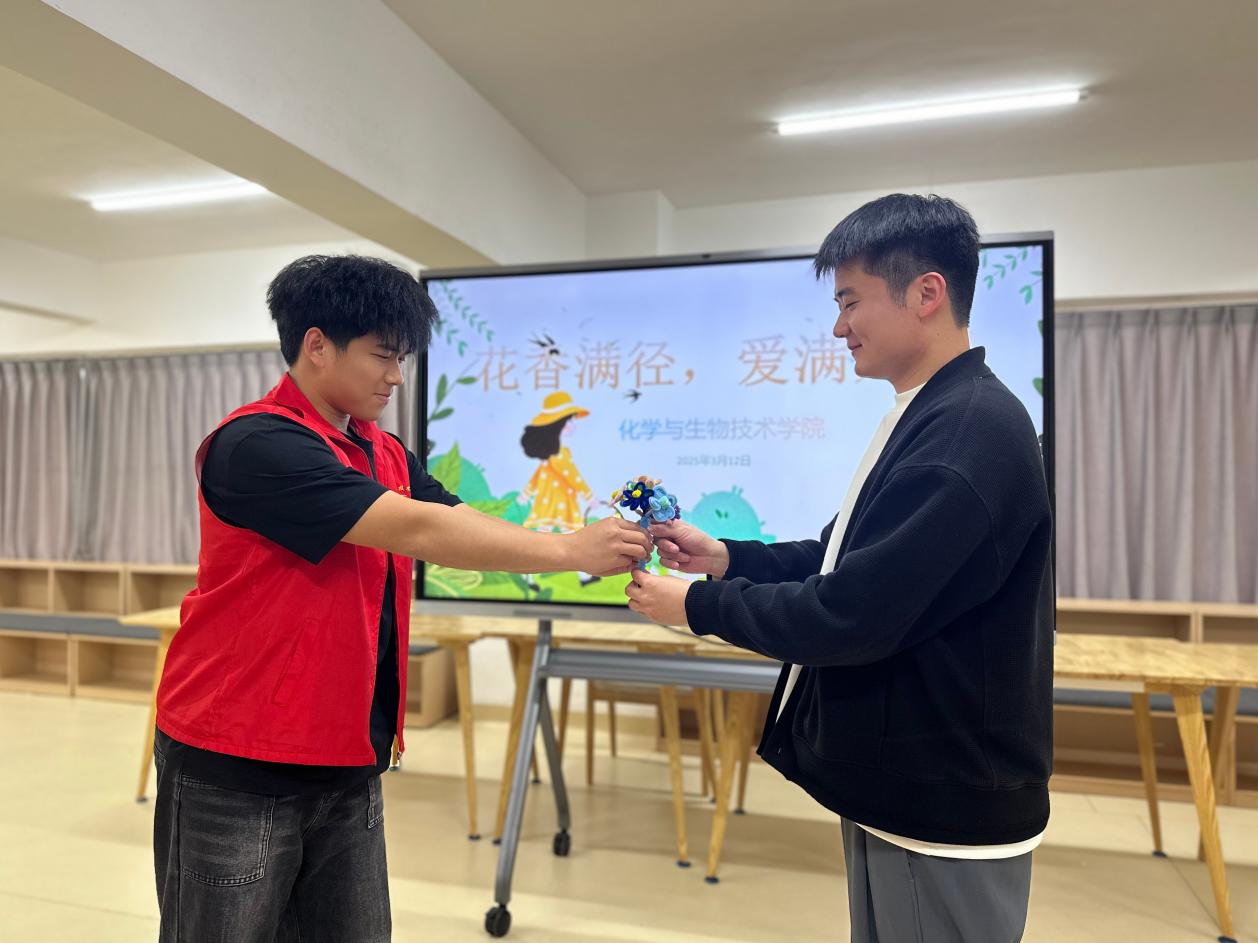 为进一步弘扬“奉献、友爱、互助、进步”的志愿服务精神,助力美好校园建设。2025年3月12日,化学与生物技术学院联合福清校区学生社区党支部开展“花香满径,爱满人间”志愿服务活动。此次活动以手作传情、劳动育美为主题,通过手工制作扭扭花传递温暖,并清洁维护学生社区环境。