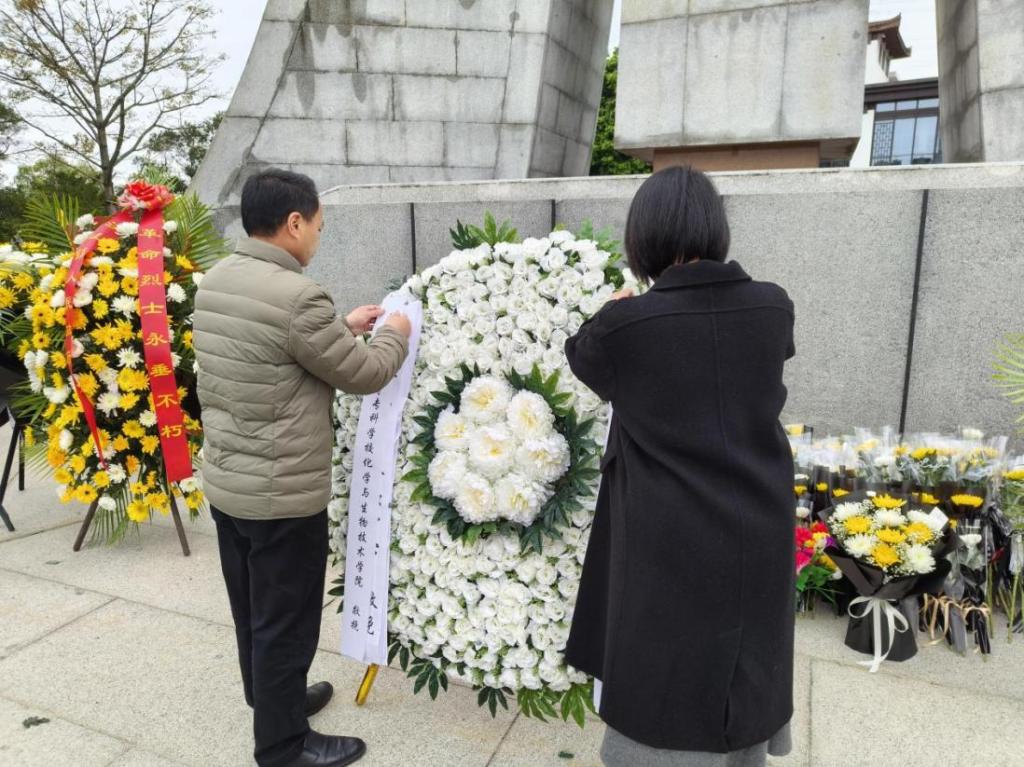 为激励师生铭记历史,勇担时代使命,在清明节来临之际,化学与生物技术学院党总支分别在福州文林山革命烈士陵园和福清革命烈士陵园开展“缅怀先烈铸忠魂,传承红色树新风”主题党日活动。学院党总支书记王华、党员教师和学生代表参加。