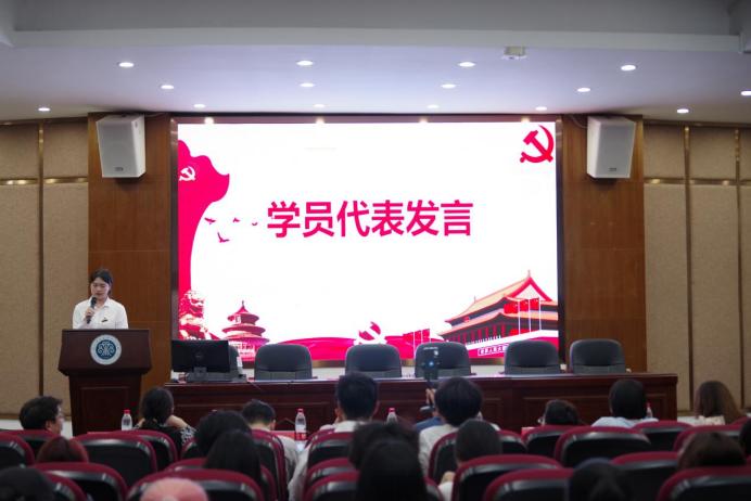 学员代表苏琼彬上台发言,她代表全体培训班学员作出郑重承诺:其一,提高思想认识,端正学习态度,深刻领悟培训内涵;其二,勤奋钻研学习,全面提升综合素养,夯实理论根基;其三,坚持学以致用,积极发挥先锋模范作用,将所学知识转化为实际行动。