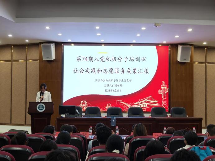 各学院学员代表依次走上讲台,汇报培训期间的学习成果与深刻感悟。其中,化学与生物技术学院学生代表林欣怡结合自身经历分享道:通过系统的理论课程学习,以及紧扣专业特色开展的红色研学、志愿服务等主题实践活动,对党员的责任与使命有了更深刻的认识。她郑重表态,今后将始终以党员标准严格要求自己,在学习生活中充分发挥先锋模范作用,用实际行动践行初心使命。