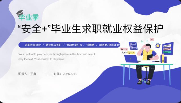 此次“安全+”主题班会紧密围绕毕业生实际需求设计内容,通过深入浅出的讲解,帮助同学们全面掌握了求职就业过程中的法律要点,明晰了维权途径。这不仅为学院毕业生顺利踏入职场提供了有力指导,更为他们在未来的职业生涯中保障自身合法权益筑牢了坚实基础。