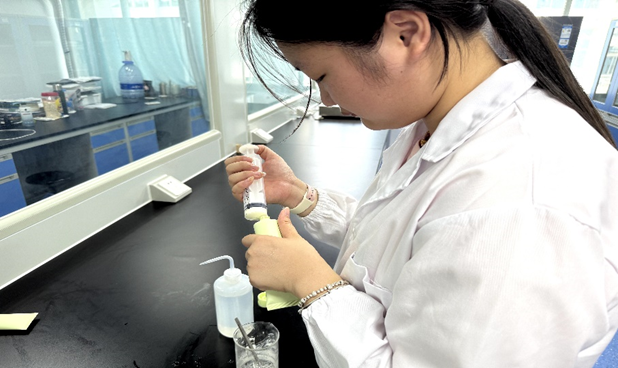 实验研发,激活产业动能。深入油茶园调研生产工艺,依托学院专业优势,以永泰山茶油为原料,成功研发出茶油润唇膏、护手霜等日化样品。通过拓展油茶应用领域,注入绿色健康理念,为茶油产业转型增添科技动力。