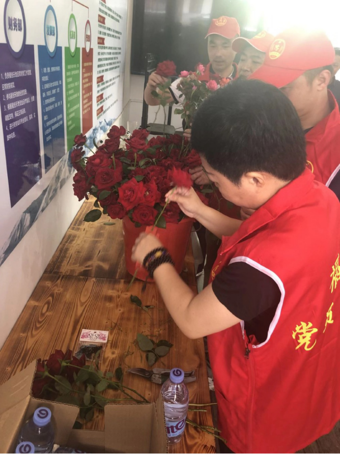 党员志愿者们走进老人活动中心,为老人插花,随后与老人聊天、话家常、讲历史,开心得不亦乐乎。整个房间里洋溢着温馨、祥和的气氛。