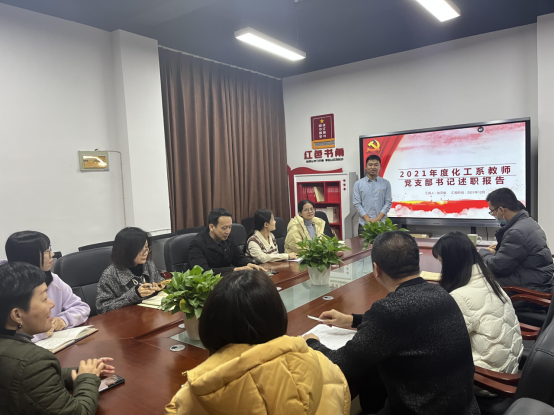 化学与生物工程系党总支为加强基层党建工作,全面提升党支部建设水平,突出聚焦支部党建主题,于2021年12月22日在4-106召开了2021年度党支部书记述职会。