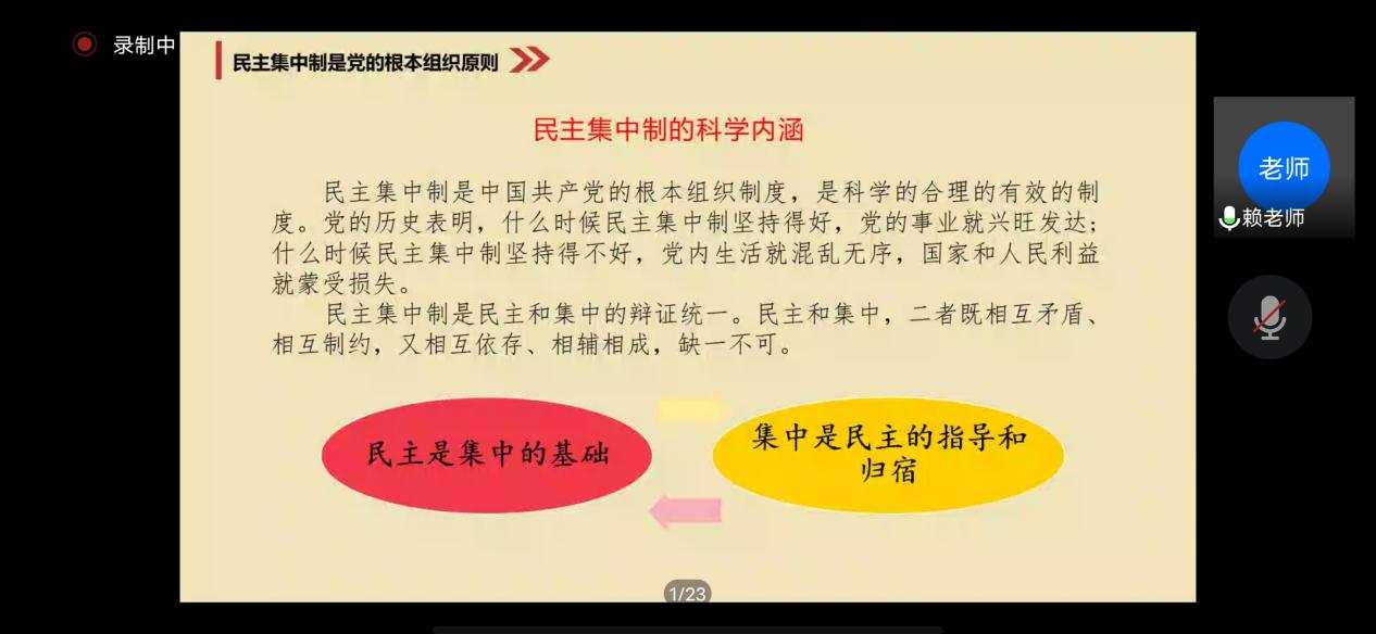 为了加强党的纪律和作风建设,弘扬党的光荣传统和优良作风,筑牢不断走向胜利的坚强保障,化学与生物技术学院党总支于2022年11月9日线上开展了“纪律严明,优良作风——中国共产党的组织、纪律和作风”讲座,化学与生物技术学院学生支部书记赖翠凤主讲。