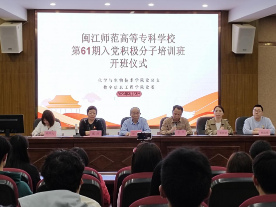 为引导党员增强“四个意识”、坚定“四个自信”、做到“两个维护”,努力建设政治合格、执行纪律合格、品德合格、发挥作用合格的党员队伍,2023年3月23日,由化学与生物技术学院党总支与数字信息工程学院党委承办的大赢家体育app下载第61期入党积极分子培训班开班。数字信息工程学院党委书记陈欣、化学与生物技术学院党总支书记王华、数字信息工程学院党委副书记董秋锋、两院班主任和辅导员代表以及106位入党积极分子参加。开班仪式由化学与生物技术学院党总支副书记张瑛主持。