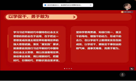 学生预备党员洪毓婕和主席团成员林璐妃、张艳3人围绕习近平总书记关于青年工作的重要思想讲诉了新时代青年的职责使命,激发同学们的爱党爱国热情,引导青年学生坚定理想信念,勤学善思、踏实奉献、勇于奋斗,规划好自身职业发展,将青春答卷书写在强国建设的宏伟蓝图上,让人生价值实现在民族复兴的伟大征程中。