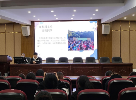 主席团成员张悦以“文化自信”为主题,短剧《逃出大英博物馆》引发同学们思考。青年学生要继承先辈们的革命斗志,不忘“根”、不忘“魂”;要走出国门,讲好中国故事,弘扬中华优秀传统文化,坚定文化自信,推进文化自强。校冰心奖学金获得者范俊鹏讲述了自己关注并帮助同学解决困难、促进民族团结的故事,弘扬中华传统美德,传递正能量。她希望同学们,认真学习专业文化知识的同时,以仁爱之心待人待己,立志成为温暖他人的火种。