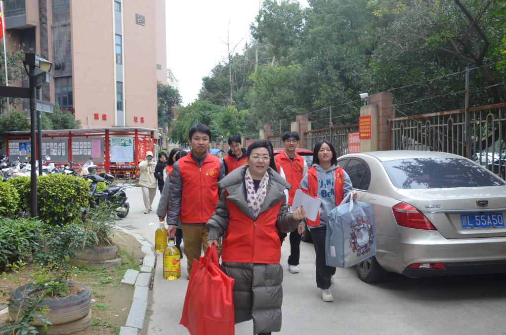 在走访慰问中,学院师生和社区工作人员与困难家庭进行了亲切交流,了解他们的生活状况和需求,鼓励他们保持乐观向上心态,并为他们送上了大米、油、棉被等慰问物资,把温暖和爱心传递到困难群众的心坎上。学院师生将走访做到“身入”与“心入”有机结合,“慰”出温暖,“问”出实情,真正将走访做到“走心”,被走访的老党员们纷纷对学院师生的关心和问候表示感谢。最后,张瑛勉励学生志愿者们向老党员看齐,学习无私奉献精神,汲取老党员身上奋进的智慧和力量,扛起社会责任担当,更好地传播爱的力量。
