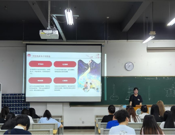 参与展示的团支部分别以“博学笃思树学风,勤勉致知铸良才”、“关注心理健康,共谱青春华章”为主题,围绕“博学笃思、勤勉致知、心理健康”十二字讲述了学风建设的重要性、博学笃思的内涵、勤勉致知的实践途径以及心理健康的相关知识等;观摩会还通过集中观看视频短片、心理游戏、学风知识问答等方式,引导同学们树立远大理想,明确学习目标,增强身心素质。最后,互动游戏“你画我猜”、“击鼓传花”、“猜猜三十秒”为本次观摩会画上完美句号。