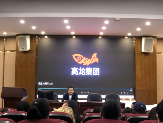 高龙集团股份有限公司人力资源经理通过一段短片,向同学们详细介绍了公司的概况,接着,进行了系统的介绍,该公司注册于香港,是专业进口、经营鱼粉、鱼油和水产铜料及水产品加工的综合性企业,集研发、生产、营销于一体。高龙集团在国内全资拥有福建高龙实业有限公司、福建高龙海洋生物工程有限公司和福建高龙生物科技有限公司等多家全资子公司及分公司。最后,感兴趣的同学纷纷举手提问,HR耐心并且详细解答每个问题,让同学们深入了解实习岗位。在宣讲结束后,有意向的同学提交了简历。