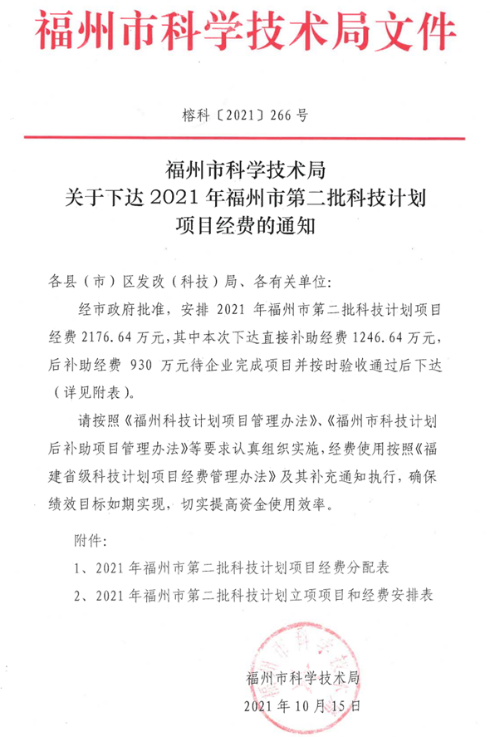 2021年10月15日,从《福州市科学技术局关于下达2021年福州市第二批科技计划项目经费的通知》(榕科〔2021〕76号)收悉,化学与生物工程系谢勇教授与福建春伦集团有限公司联合申报的项目《复合酶-微胶囊处理对速溶茉莉花茶香气与滋味的影响及其成分研究》喜获立项,项目资助经费10万元。福建春伦集团有限公司是化学与生物工程系的校企合作企业,这项突破有助于提高校企合作水平,对化学与生物工程系科研实力的整体提升将起到重要的推动作用。