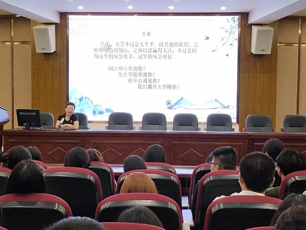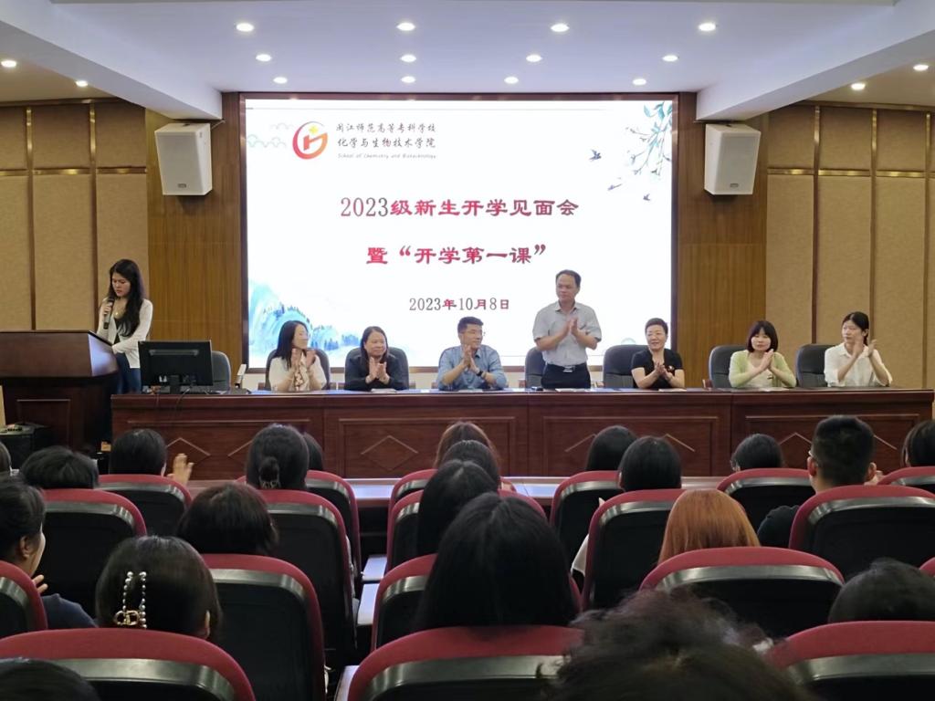 2023年10月8日,化学与生物技术学院在仓山校区多功能厅开展2023级新生开学见面会暨“开学第一课”活动。活动由新生辅导员孙雯晶主持,学院党总支书记王华、院长陈宗保、副书记张瑛、副院长林媛、团委书记赖翠凤、辅导员、班主任、23级新生助导以及仓山校区23级全体新生参加。