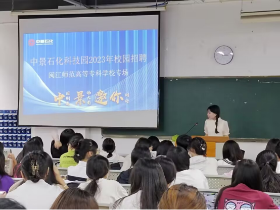 宣讲会上,中景石化人事代表通过播放企业宣传片,展示其精心打造为建一流工程、创一流业绩的品牌企业的发展历程。还介绍了企业所拥有的资质、所获荣誉以及承建的项目等,加深了同学们对企业的了解。接着,她就企业的规章制度、福利待遇、企业文化、组织构架、公司前景等方面进行了详细讲解,介绍了企业为学生提供的不同岗位,让同学们知道每个工种的工作内容,明确工作职责。另外,也对学生关心的薪资待遇问题进行详细解答,希望同学们能带着规划有目的的去学习、去实践,珍惜机会,在中景石化发挥无线的潜能,实现自己的梦想!