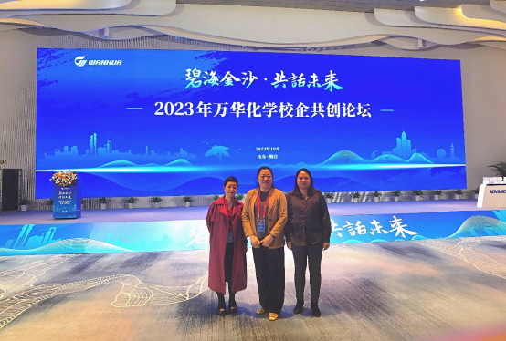 2023年10月12-13日,万华化学集团股份有限公司在山东烟台举办了“碧海金沙 共话未来”2023年校企共创论坛。此次论坛吸引了来自全国各地的40余所化工类相关高职院校领导、教师代表,以及万华化学公司领导、中国化工协会的代表共计150人参加。学校党委副书记林旻带领化学与生物技术学院党总支副书记张瑛、副院长林媛参会。