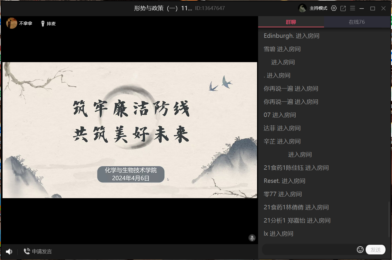 为帮助毕业生系好人生“第一粒扣子”,增强廉洁意识,加强毕业生就业廉洁教育,化学与生物技术学院于2024年4月6日在线上开展了“筑牢廉洁防线,共筑美好未来”就业廉洁主题班会。