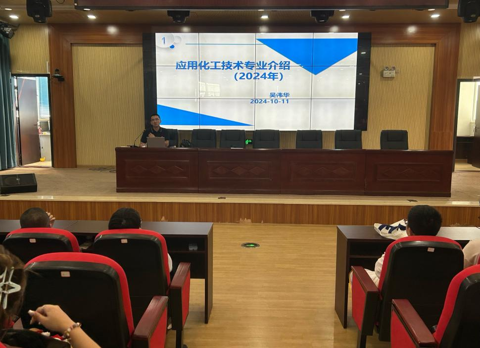 吴伟华老师为24应用化工技术专业新生讲述了专业概况,从专业的发展历程到未来的发展方向,让同学们对所学专业有了更全面的了解。他通过介绍优秀毕业生的案例,激励同学们努力学习,追求卓越。