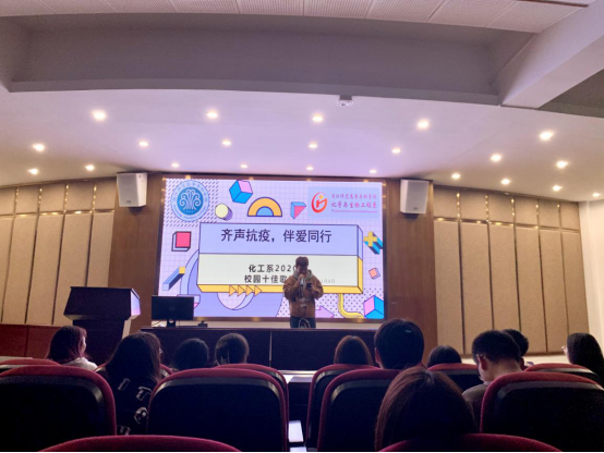 为了丰富校园文化生活,努力营造积极向上、健康文明的校园文化气氛,为学生提供展示自己才华的舞台,2020年11月9日,化工系组织在学术报告厅举行了“艺”起抗“疫”,共盼春来——化工系2020年校园十佳歌手大赛(初赛)。由化工系两委一会8名成员以及文娱部2名同学组成主评委团,各个班级推送15名同学组成大众评委团。