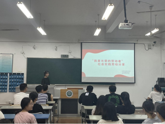 为弘扬劳动精神,传播服务理念,提高同学们自身的社会责任感和实践能力,同时感染更多同学加入志愿实践行列中来。2021年5月16日,化工系19生物制药技术班于4-303教室开展了以“我是光荣的劳动者”社会实践分享会。