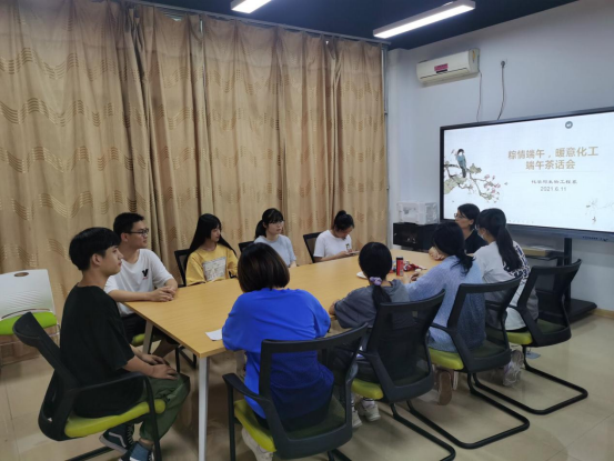 为更好传承中华民族优秀文化传统,弘扬和培养以爱国主义为核心的民族精神,加深大学生对端午节这一传统节日的了解,化学与生物工程系组织留校过节学生于2021年6月11日下午17:30分在教学楼4-106教室召开了以“粽情端午,暖意化工”为主题的端午茶话会。活动由辅导员郑老师主持。