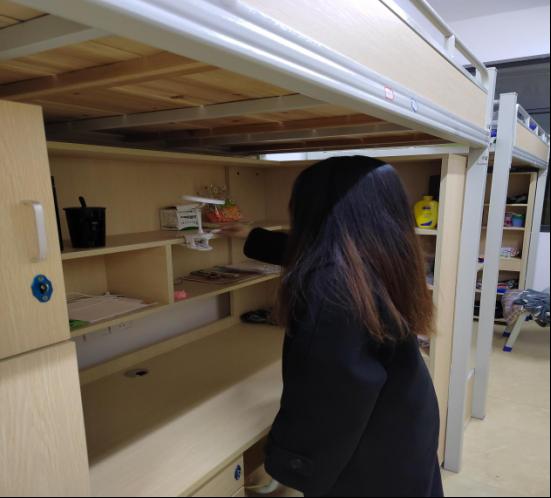 此次排查由各班生活委员负责,排查宿舍是否存在安全隐患,离校的学生是否整理好宿舍内务,确保宿舍的安全。在排查中发现,每位同学的床位物品摆放整齐,桌面整洁无其他杂物,床铺被褥整理收纳好以免受潮发霉;阳台和厕所的水龙头关紧不滴水,每间宿舍做到断水断电。我们要严格遵守学校宿舍管理相关规定,提高个人安全意识,注意保护人身和财产安全,平安离校,安全到家。