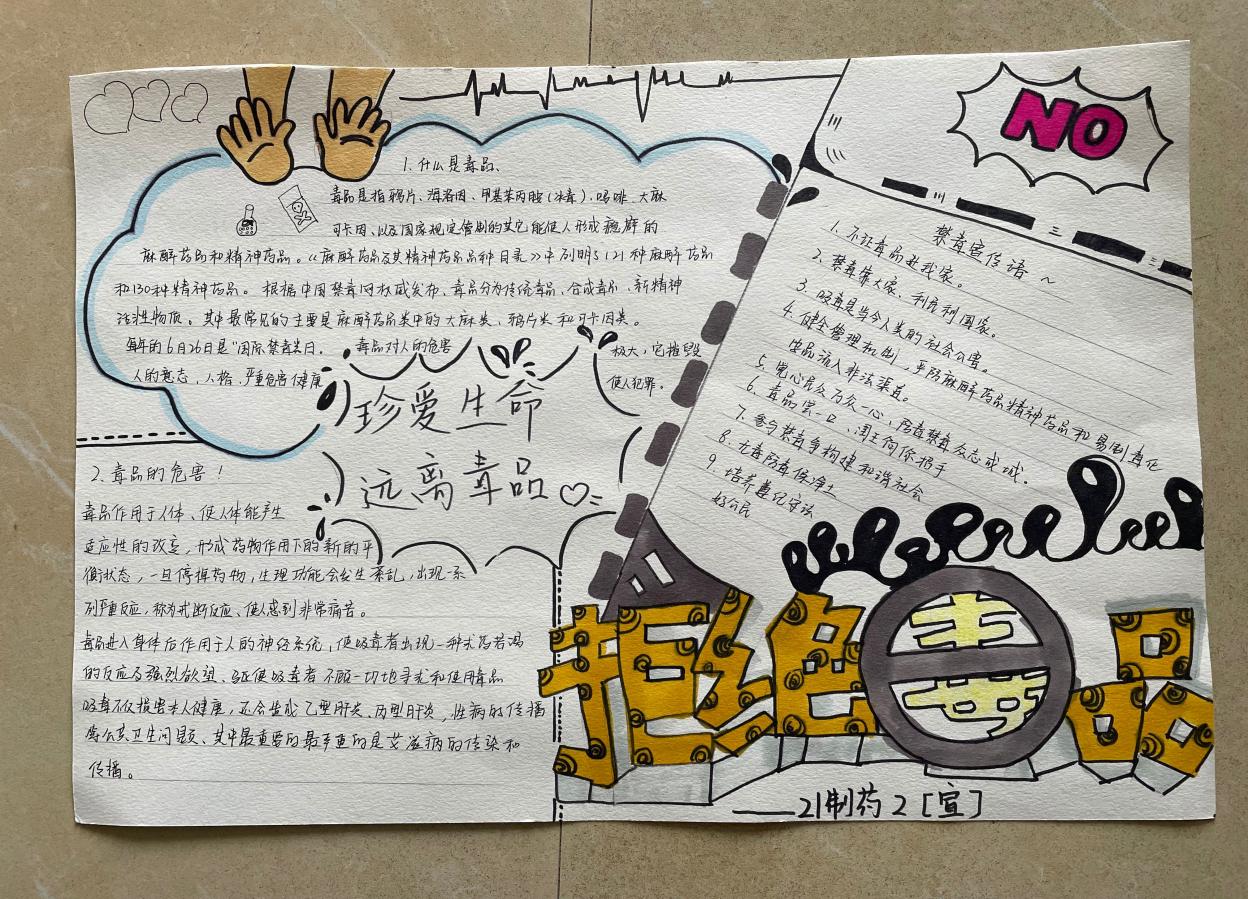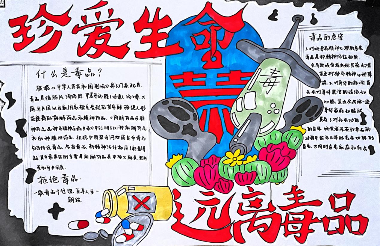 在活动中,同学们查阅了禁毒防毒相关资料,充分发挥主观能动性,围绕主题创作出许多优秀且有意义的手抄报作品。每一份作品都结合实际从毒品的类别、危害性、预防毒品等方面展开宣传,让同学们认清毒品的危害,懂得“珍惜生命,远离毒品”,培养禁毒意识,自觉与涉毒违法犯罪作斗争。其次,学院利用网站、宣传栏等传播平台对优秀作品进行展示,充分运用信息化载体扩大禁毒宣传的效应,营造了浓厚的宣传氛围,得到了师生们的认可。