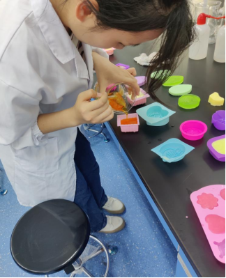 实验室里,志愿者们结合专业技能所学,研发、创新新的唇膏、口红、手工皂作品。烘焙室内,志愿者们认真调配、制作麻薯、蛋糕等小甜品。她们集思广益、相互协作,在劳动中体会乐趣,在劳动中创造美。