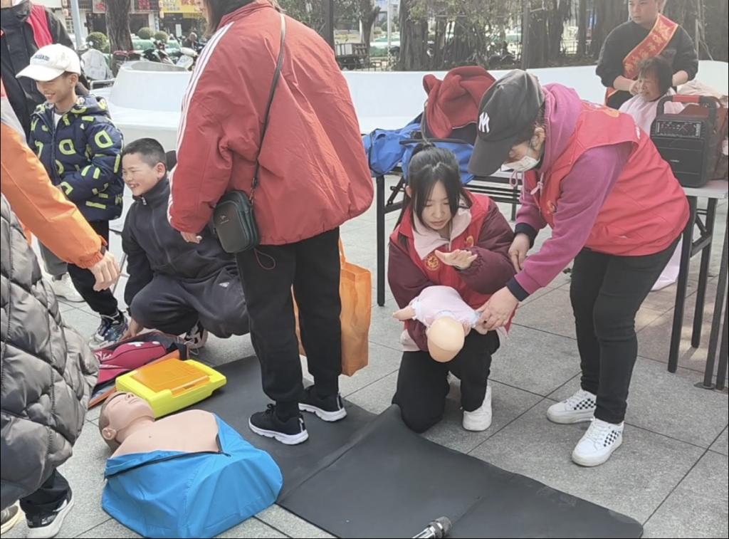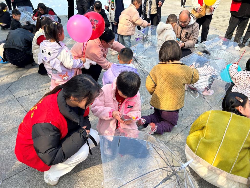 志愿者们迅速投入工作,协助布置活动现场,现场充满活泼欢快的氛围。接着,讲解员讲述海姆立克法、心肺复苏等应急救护知识,并指导演练,将理论知识运用到实践中。在游戏环节,孩子们分组协作,全力奔跑,为了团队荣誉努力拼搏。志愿者们在一旁加油助威,给予孩子们鼓励与指导,现场充满欢声笑语。“为爱撑伞”环节,充分激发了孩子们的想象力,他们用生动可爱的画作,展现出独特的思维方式,绘制属于自己的花伞。志愿者们积极配合,耐心引导,让孩子们在轻松愉快的氛围中加强动手能力。