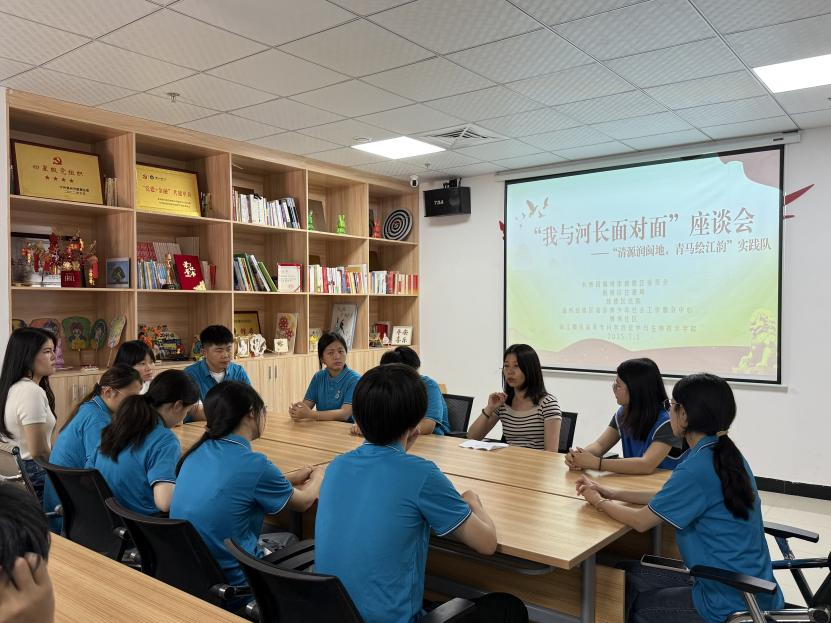 随后,实践队与鼓楼住建局河长办邱兰英开展了“我与河长面对面”座谈会。邱兰英分享了汛期河道治理经验与应对城市内涝的挑战,系统讲解了福州内河“长制久清”治理机制。青年们围绕巡河见闻、治理难点等实际问题踊跃提问,这场交流深化了青年对流域系统治理复杂性的认识,搭建起理论思考与基层智慧相互融合的桥梁。