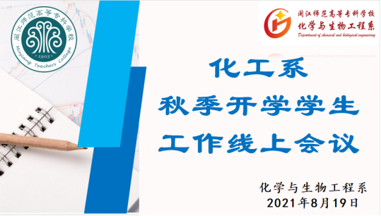 8月19日,化学与生物工程系召开2021年线上秋季开学学生工作部署会议,全体辅导员参加会议,会议由张瑛副主任主持。