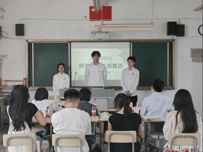 为进一步加强学院学生干部队伍建设,选拔德才兼备的优秀学生骨干,2025年6月22日,化学与生物技术学院在福清校区教学楼201教室隆重举行第十届两委一会学生干部换届竞选大会,学院副院长袁晓娟、团委书记赖翠凤及各辅导员参加。