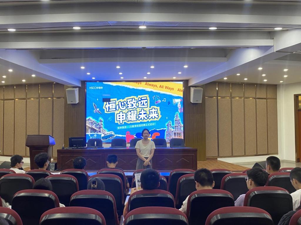 宣讲会以学院宣传片与恒申集团新版形象片的联播放映拉开序幕。恒申集团宣讲人以“锦纶链主向新而行” 为主题,生动讲述了集团从 “一根尼龙丝” 起步,逐步成长为 “千亿产业链” 龙头企业的发展历程。随后,她围绕企业文化内核、薪资福利体系、员工宿舍环境等毕业生关切内容展开详细介绍;集团优秀青年员工代表则结合自身工作经历,分享了个人职业成长路径与项目实践经验,现场氛围热烈融洽。互动问答环节中,同学们围绕职业发展方向、专业岗位匹配、人才培养体系等问题踊跃提问,企业招聘团队逐一细致回应,充分解答学子疑虑。整场宣讲会内容详实、互动高效,获得在场毕业生广泛认可。