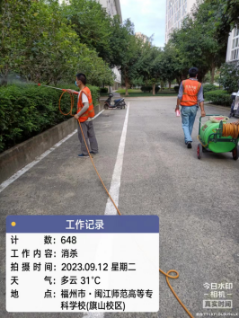 专业消杀人员对学生宿舍、办公楼、教室、草坪花坛等主要生活、学习以及工作场所进行了全面喷杀,在蚊虫鼠蚁滋生地加量投放停留时间较长的杀蚊虫药品,整个行动过程秩序井然。同时,物业人员积极清理卫生死角,加快卫生垃圾的清理、搬运。通过多次多管齐下的灭蚊杀虫行动后,校园蚊虫、苍蝇等明显减少,效果显著,受到师生们的好评。