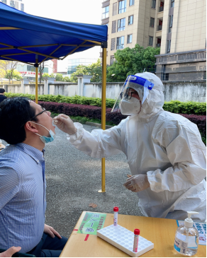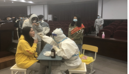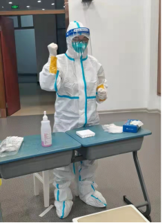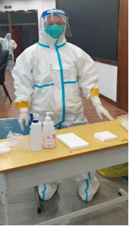 3月18日福州市疫情防控指挥部启动核酸检测全覆盖,负责旗山校区师生核酸检测的博澳医学检验公司采样人手紧缺,为完成任务,医务室李华秀医生带领全体医务人员经专家紧急指导培训后,积极全程参与到4000多位师生的核酸采集工作,中午一点才脱下防护服将存储采样的保温箱送到博澳公司后才用餐。
