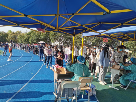 3月21日下午4点城门镇卫生院正在仓山校区开展每日20%师生核酸抽检工作,5点多属地城门镇谢安村突发一位疑似核酸阳性病例,仓山区疫情防控指挥部要求启动新一轮核酸筛查,临时抽调走校内正在采样人员,仓山校区医务室全体医务人员接到加班通知后,有的放弃休息、有的交代家人照顾生病小孩,朱娜、黄艳君医生带队和护士们临阵上场,直到深夜十一点多才全部完成3421份采样,个个身心疲惫。