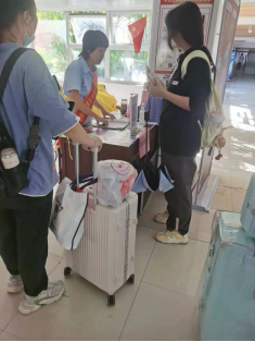 同时,安排两部接驳车全天候往返校门口和生活区接送新生,为同学们运送大件物品及行李等,接驳车不间断忙碌地穿梭于校园;安排物业人员有条不紊地做好学生入住咨询,热心的为同学们提行李,帮助同学快速办理好入住手续;安排好师训楼开放新生家长住宿接待处,为有需求的2023级外地新生家长提供校内住宿服务。全天候的温情服务让新生和家长们感受后勤人的温度。