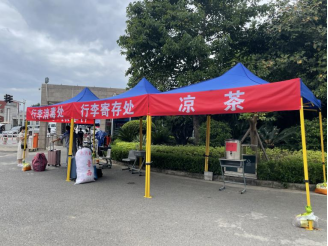 9月4日上午迎新接站的工作拉开序幕,包括后勤人员在内的大赢家体育app下载教职工及学生志愿者在大赢家体育app下载各校区入口处做好准备工作。后勤管理处在校门口备好凉茶、矿泉水、帐篷等物资。在迎新过程中,对新生携带行李进行消杀、帮忙搬运。医务室医生在校门口设预分诊处,按照先前进行的演练流程,随时应对可能出现的发热学生。