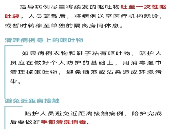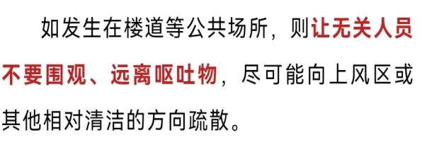 如呕吐发生在教室、办公室、会议室等房间内,将呕吐病例以外的人员疏散至房间外。