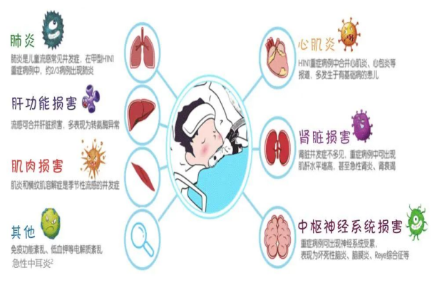 严重的并发症如脑炎、肾炎,会造成不可逆的损害,不同程度地对生活造成影响。特别受新冠疫情的影响,双重感染,会加重流感病情的复杂性。