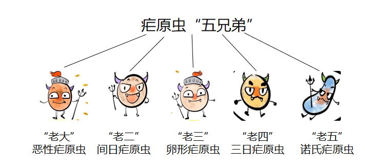 长期研究表明,可感染人体的疟原虫家族中有“五兄弟”,即