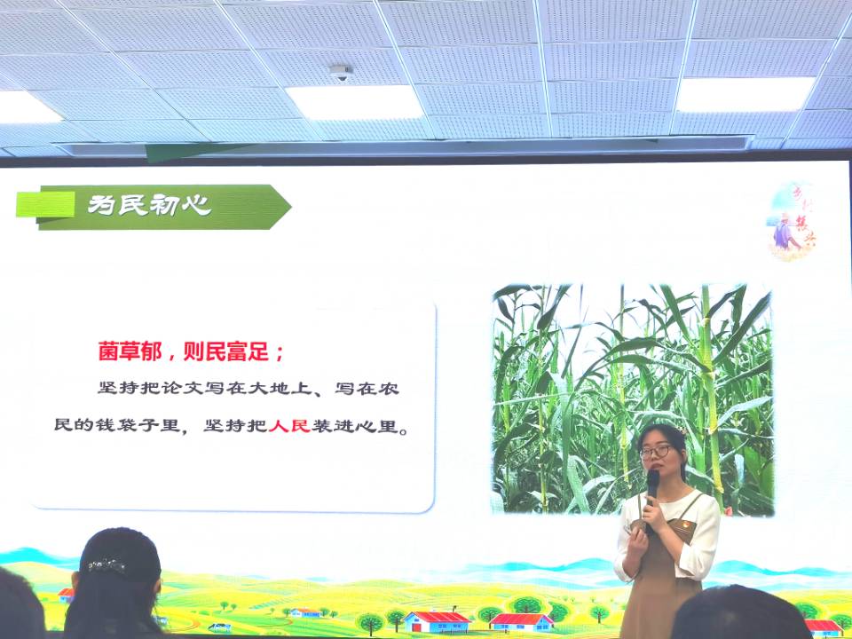 黎凤老师的党课通过讲述“菌草之父”林占嬉教授,在菌草技术研发与技术扶贫之路中的艰辛动人故事,以及结合她与林教授面对面交流的经历,让大家真切看到林教授用行动诠释着党员质朴纯粹的初心,忠诚奉献的担当以及天下为公的情怀,引导广大党员同志们向身边榜样学习,铭记党员责任,把初心融入血脉,把使命扛在肩头,在自身岗位中精耕细作,在学习实践中练就本领,在攻坚克难中勇毅前行,履行好站在党旗下的铮铮誓言。