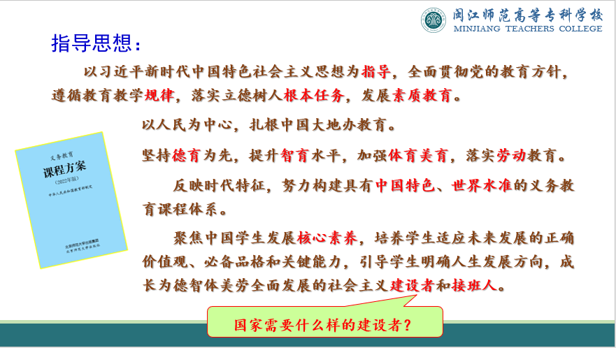 在党课中,林明华书记对《义务教育课程标准中的课程方案》(2022年版)进行了深入解读,明确了应以培养学生核心素养为目标,培养学生适应未来发展的正确价值观、必备品格和关键能力,引导学生明确人生发展方向,成长为德智体美劳全面发展的社会主义建设者和接班人。