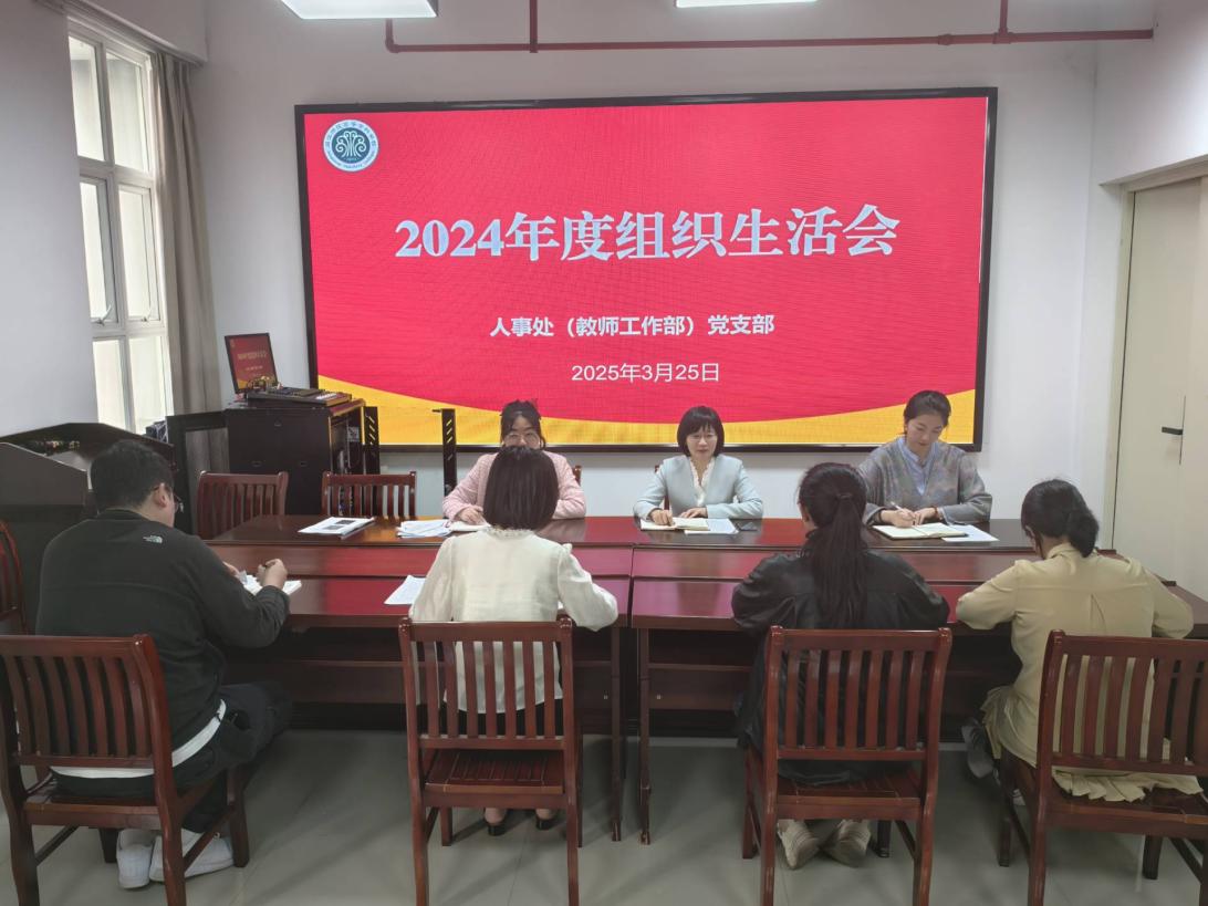 为深入学习贯彻习近平新时代中国特色社会主义思想和党的二十大及二十届二中、三中全会精神,人事处(教师工作部)党支部于3月25日召开2024年度组织生活会暨民主评议党员会议。会议由支部书记吴春艳主持,全体党员参加。