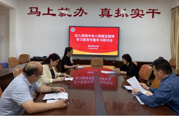 5月6日,教科所党支部组织开展深入贯彻中央八项规定精神学习教育专题学习研讨会。会议由支部书记蔡勤主持,全体党员参会。
